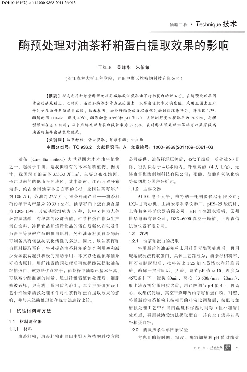 酶預(yù)處理對油茶籽蛋白提取效果的影響
