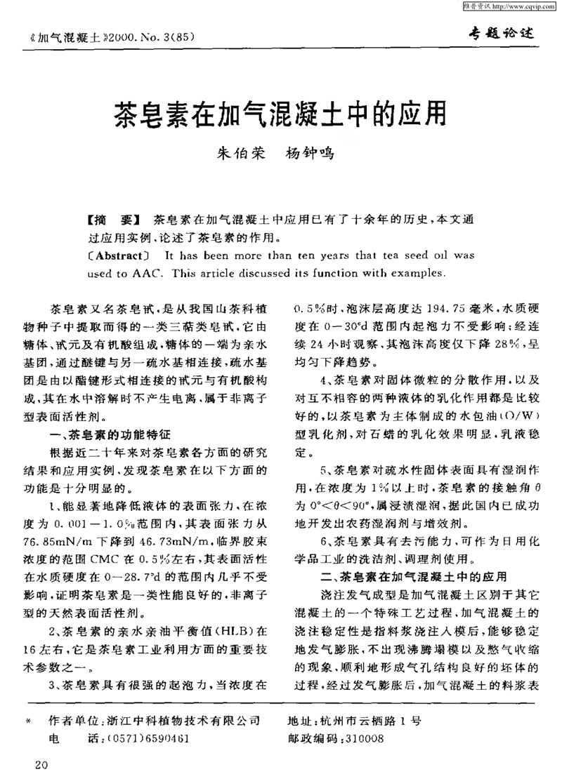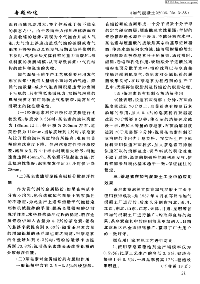 茶皂素在加氣混凝土中的應用