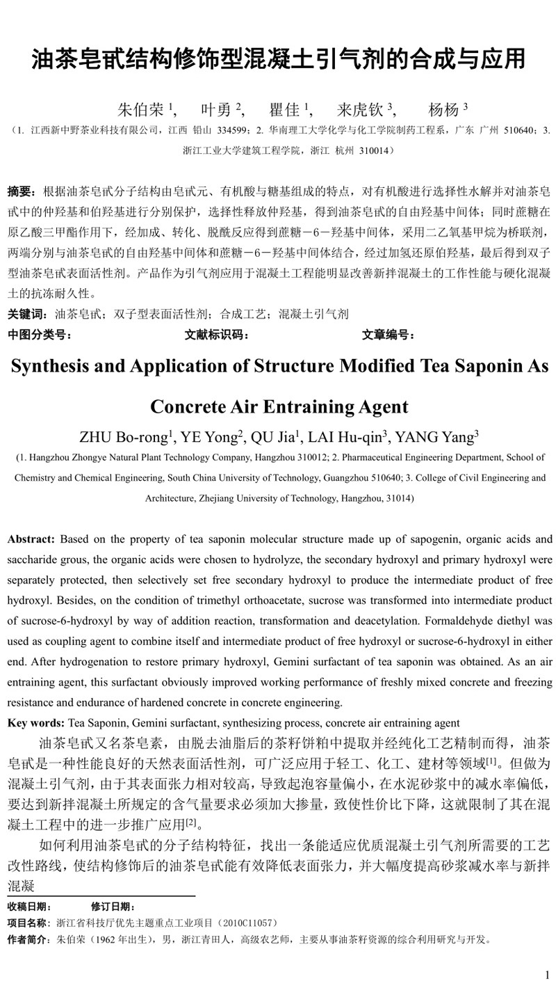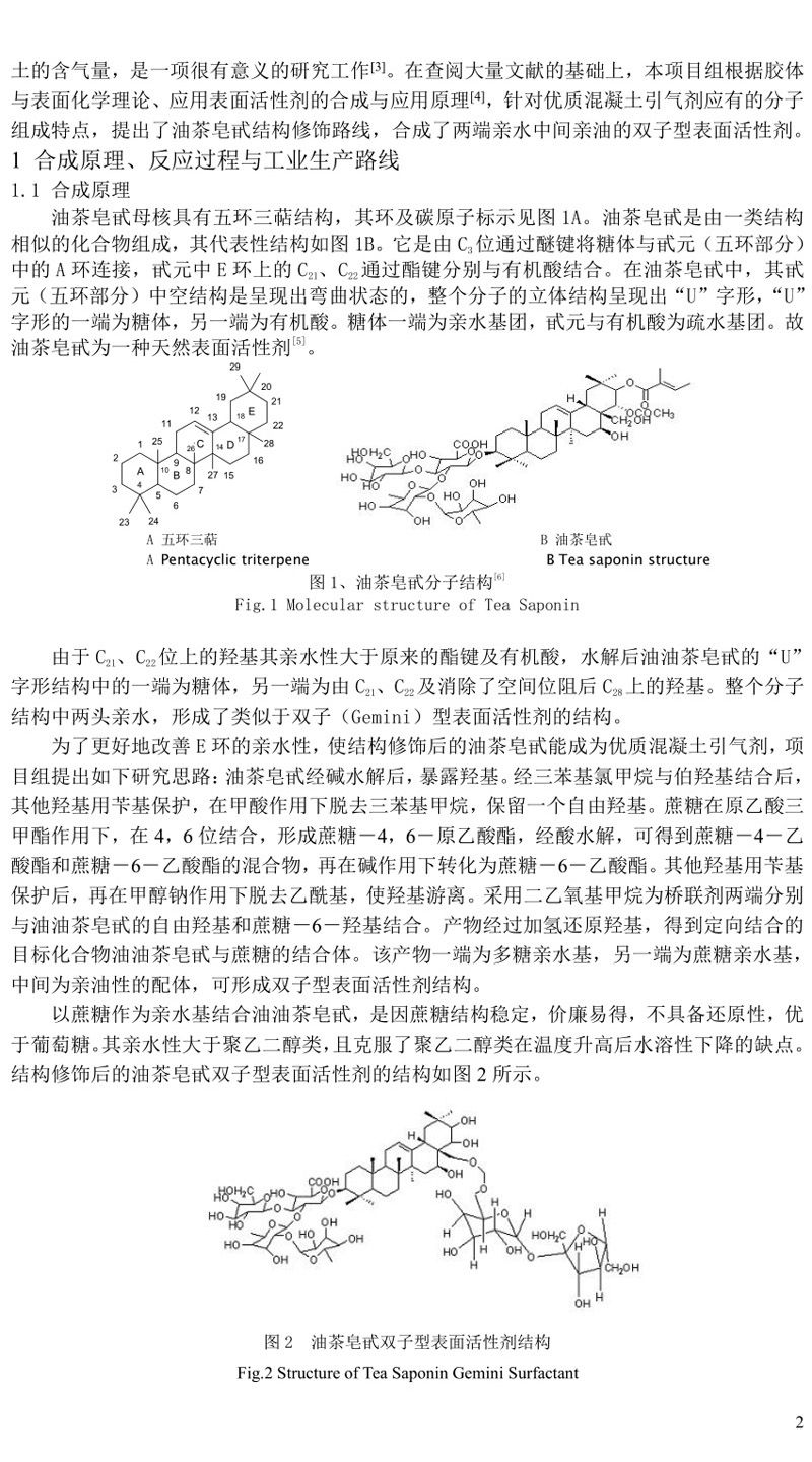 油茶皂甙結構修飾型混凝土引氣劑的合成與應用