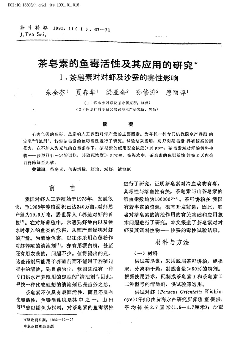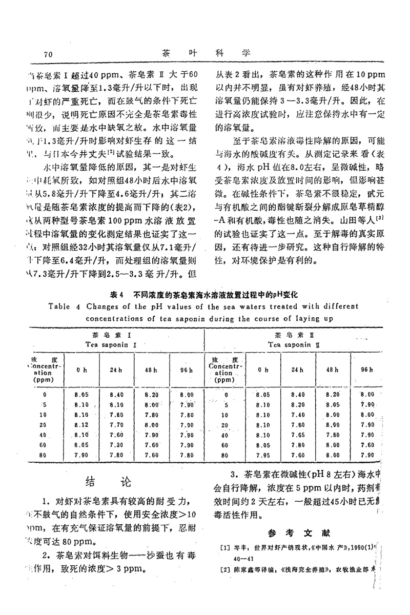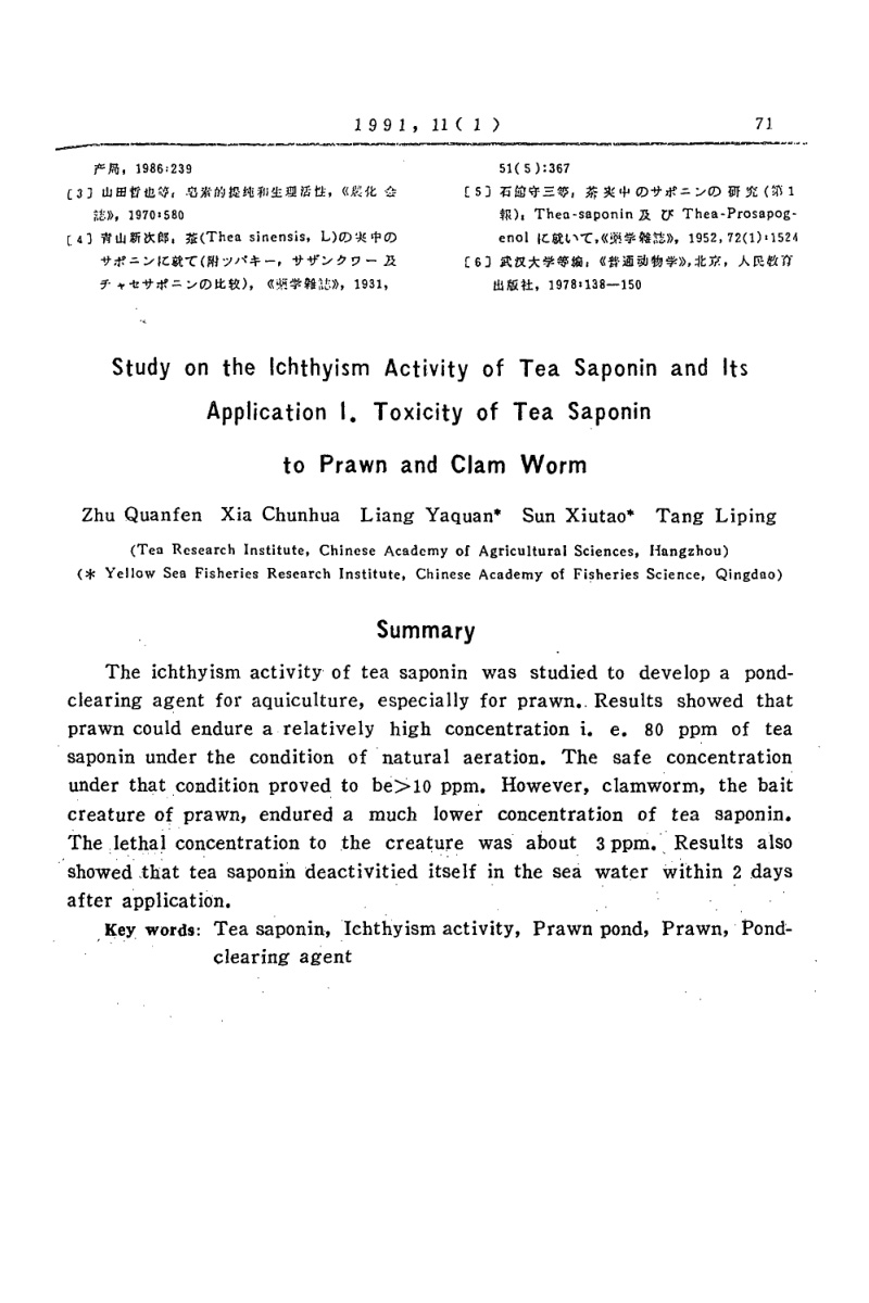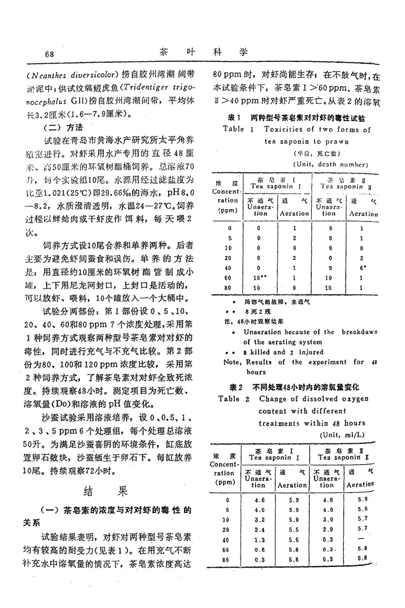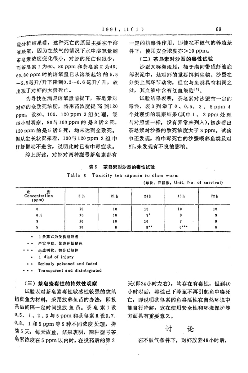 茶皂素魚毒活性及其應用的研究—茶皂素對對蝦及沙蠶的毒性影響