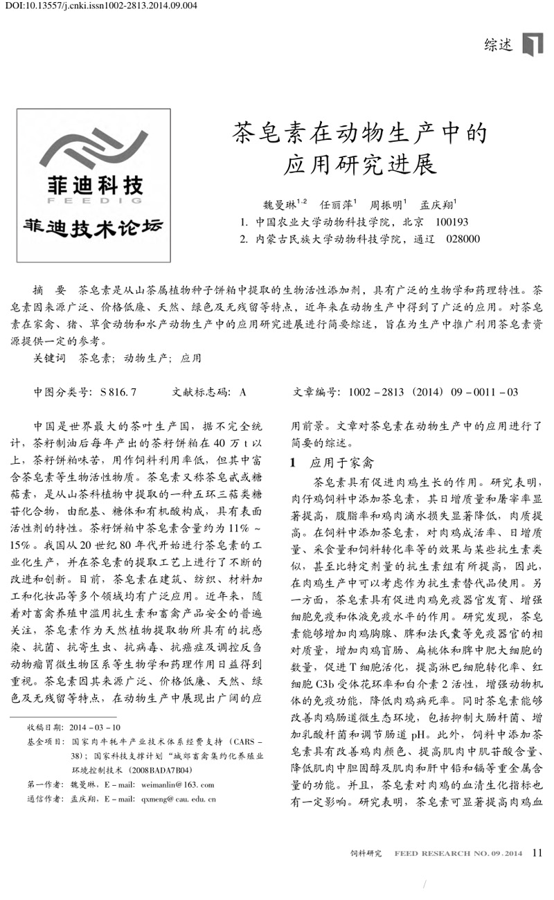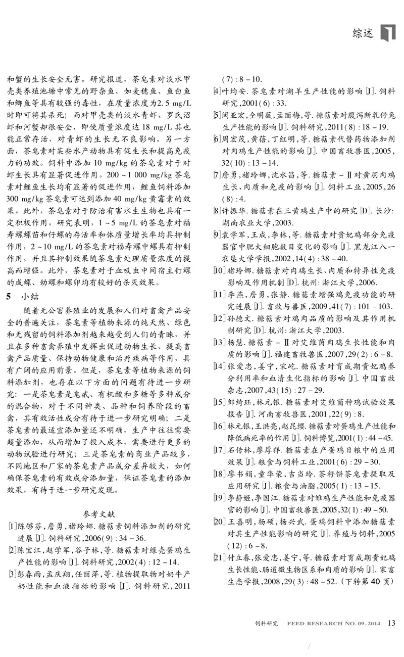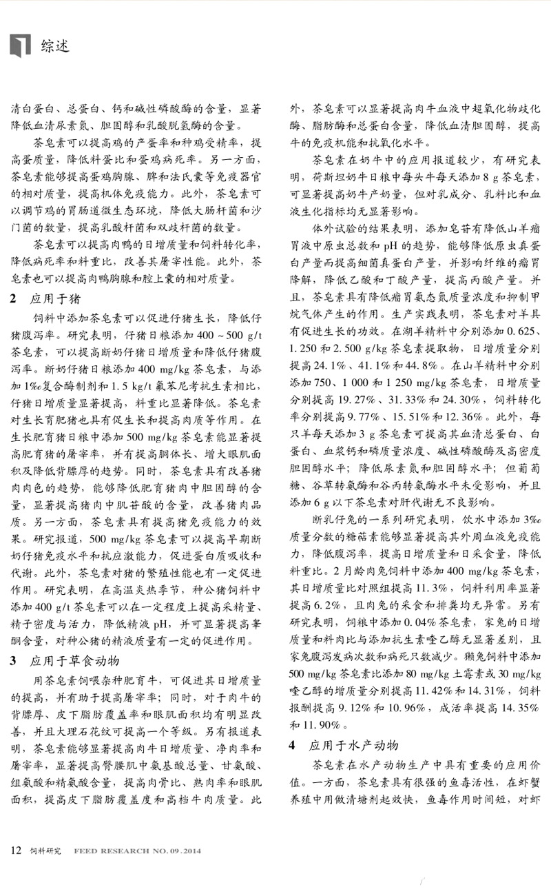 茶皂素在動物生產中的應用研究進展